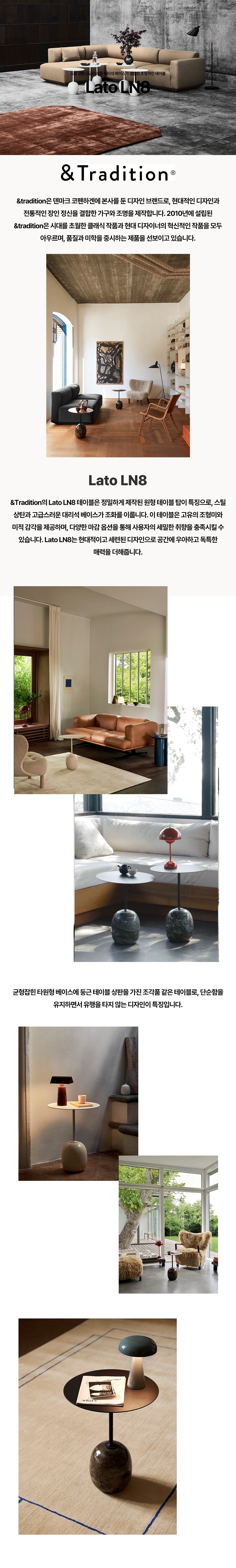 &Tradition의 Lato LN8 테이블은 정밀하게 제작된 원형 테이블 탑이 특징으로, 스틸 상탄과 고급스러운 대리석 베이스가 조화를 이룹니다. 이 테이블은 고유의 조형미와 미적 감각을 제공하며, 다양한 마감 옵션을 통해 사용자의 세밀한 취향을 충족시킬 수 있습니다. Lato LN8는 현대적이고 세련된 디자인으로 공간에 우아하고 독특한 매력을 더해줍니다.