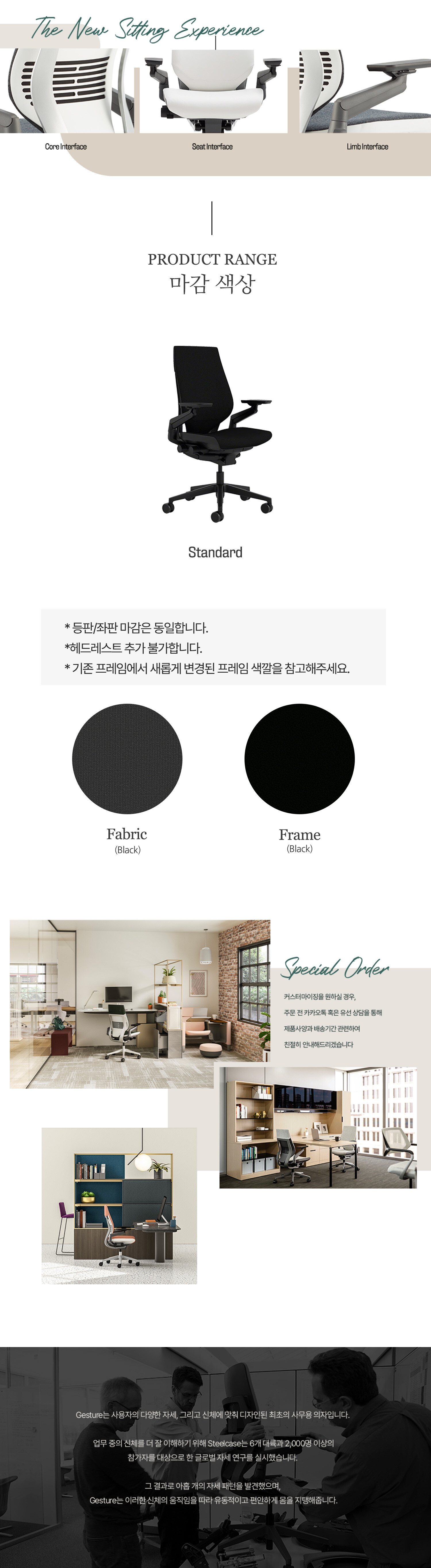 Steelcase Gesture 의자는 현대적인 업무 환경과 다양한 작업 스타일에 맞춰 설계되었습니다. 이 의자는 기술 사용이 증가하는 현대 사회에서 사용자의 자세 변화를 지원하는 독창적인 기능으로 눈길을 끕니다. 360도 팔걸이 조절은 태블릿에서 노트북까지, 모든 기기 사용 시 탁월한 지지력을 제공하며, 조절 가능한 시트와 등받이는 장시간 앉아 있어도 편안함을 유지합니다. 집에서의 원격 근무나 사무실에서의 다양한 업무에 완벽하게 대응하는 Gesture는 모든 사용자에게 개인 맞춤형 편안함과 건강한 작업 환경을 선사합니다. Gesture와 함께라면, 어디서든 생산성과 웰빙을 동시에 누릴 수 있습니다.