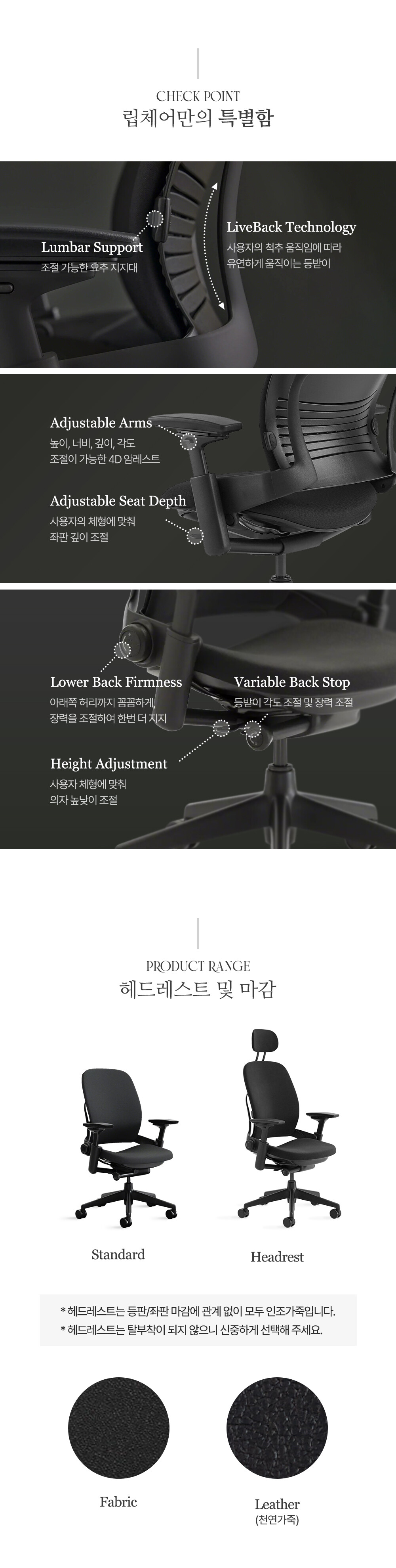 LEAP의 특허기술인 Live Back은 다양한 모양과 크기의 신체에 보편적인 편안함과 손쉬운 조정 기능을 제공합니다. LEAP은 척추의 모양을 닮았으며, 그의 움직임을 모방하여 모양을 변경하고 이동하면서 몸을 지탱합니다. 화려한 수상 경력을 자랑하는 LEAP의 디자인은 환경 지속 가능성 및 재활용 기준을 유지하며 가장 인기 있는 베스트셀러 의자입니다.